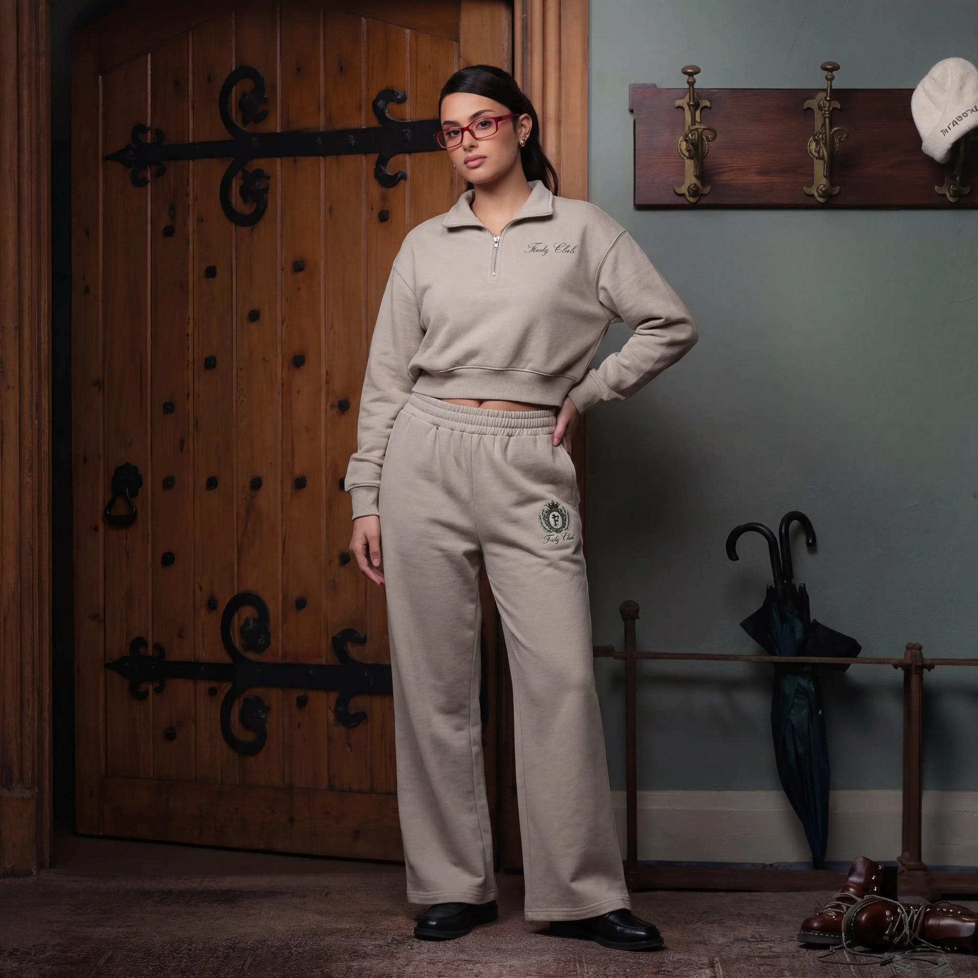 The piece features soft premium fabric that feels cozy against your skin. Its relaxed, cropped fit allows for easy movement, making it ideal for casual and semi-casual occasions alike. The sleek half-zip neckline adds a refined detail and offers versatile styling options.